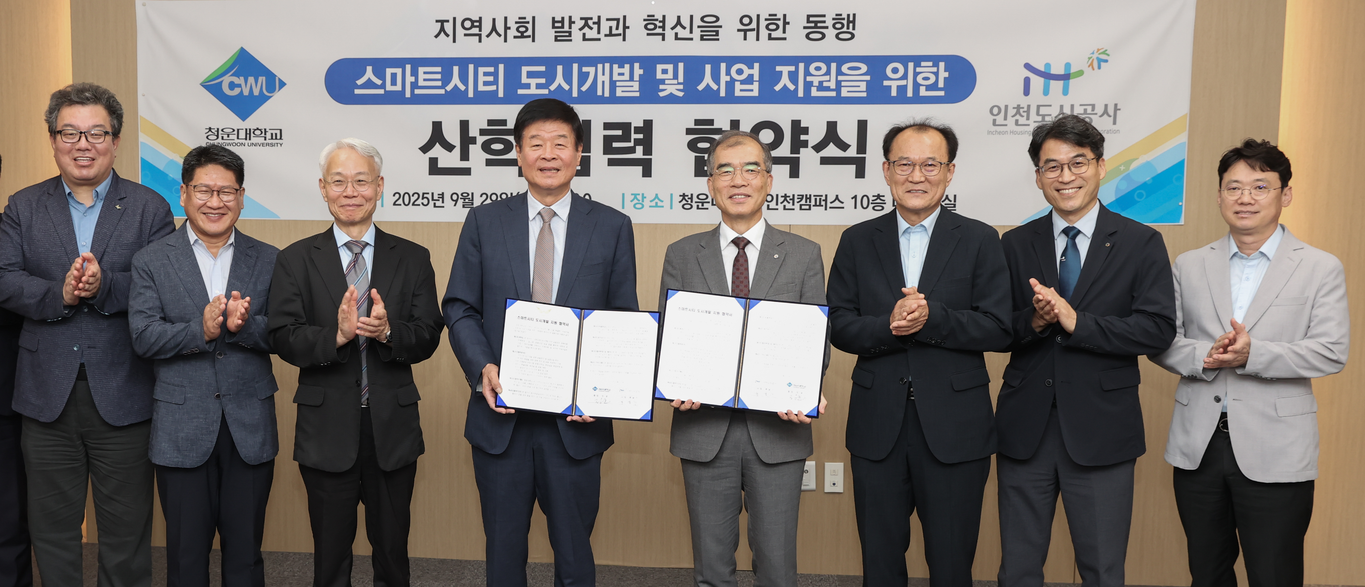 2025.09.29. iH는 지속가능한 도시개발/도심재생을 위해 AIㆍ스마트기술의 도입을 위해 청운대학교의 실질적 협력모델 구축 필요와, 인천 지역사회에 기여할 수 있는 사업 발굴과 스마트시티 전문대학원의 지속가능한 발전 방안 모색을 위하여 청운대학교와 '스마트시티 도시개발 및 사업지원을 위한 산학협력 협약'을 체결하였습니다.